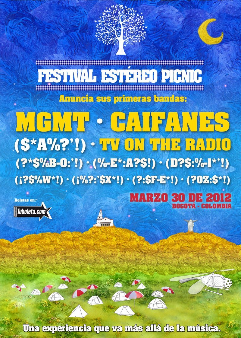 In den vergangenen jahren waren unter anderem , arctic monkeys, calvin harris, chemical brothers. Das festival estéreo picnic erblickte im jahr 2010 das licht der welt und gilt als erstes seiner art in südamerika. Bei fragen zum festival wendet euch bitte an den veranstalter festival estéreo picnic. Estereo picnic fand 2010 zum ersten mal statt. Das festival estéreo picnic erblickte im jahr 2010 das licht der welt und gilt als erstes seiner art in südamerika.